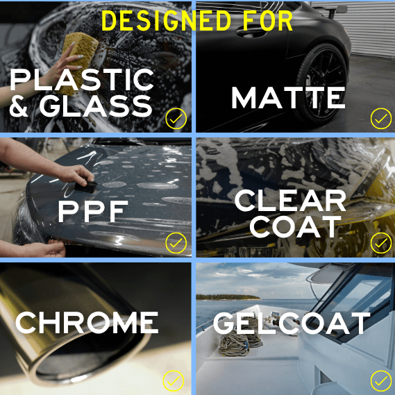 - Designed for use on paint, clear coat, chrome, PPF, gel coat, plastic and glass
